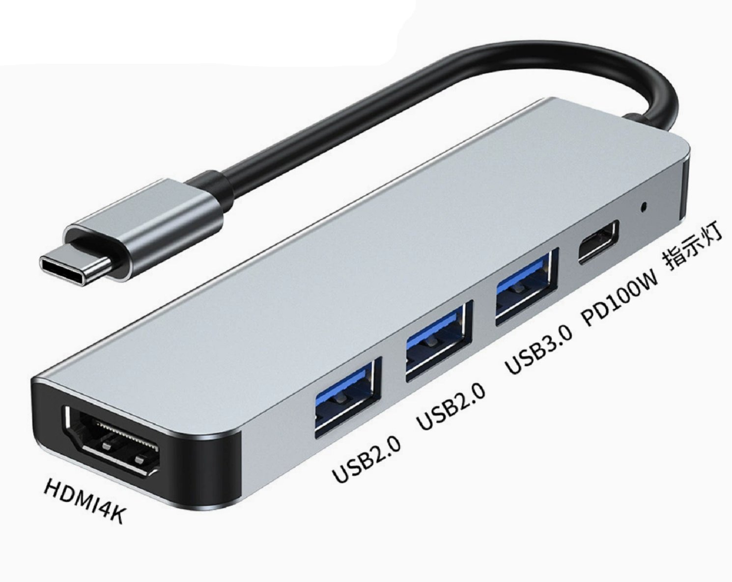 HS5701 5 in 1 Type-C HUB 1*HDMI 4K + 1*USB3.0+2*USB2.0+1*USB-C PD