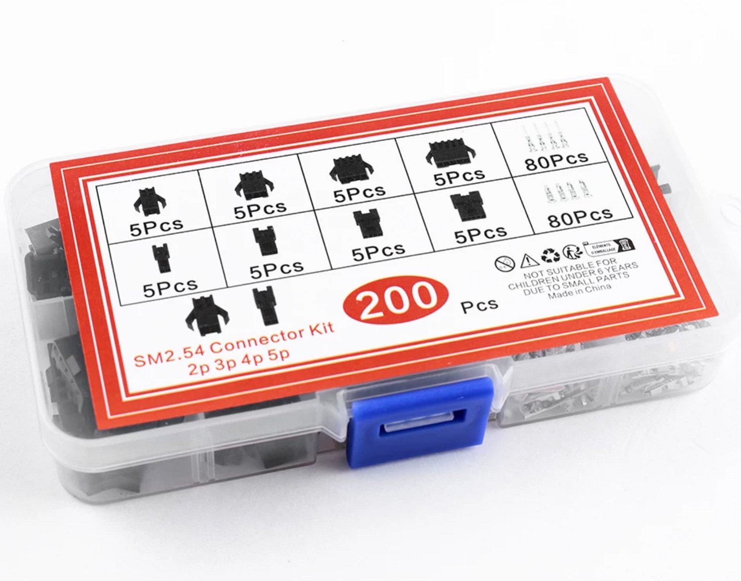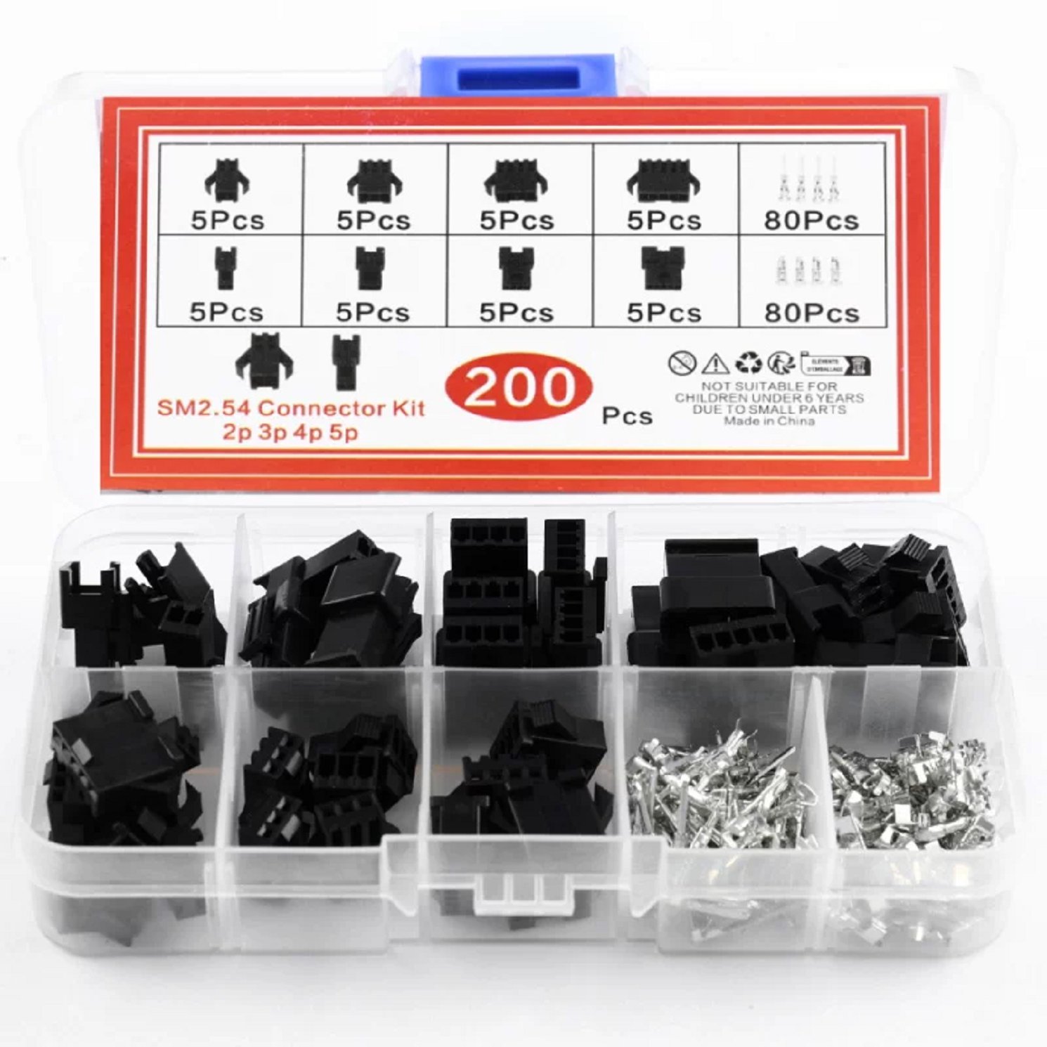 HS7630 200Pcs 2.54mm Pitch SM 2/3/4/5Pin Dupont Housing Kit