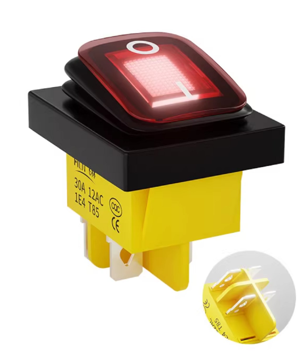 HS7909 On Off 20A/250V Heavy Duty 4pin 2 Position IP67 Waterproof  Toggle Rocker Switch with LED 12V 220V
