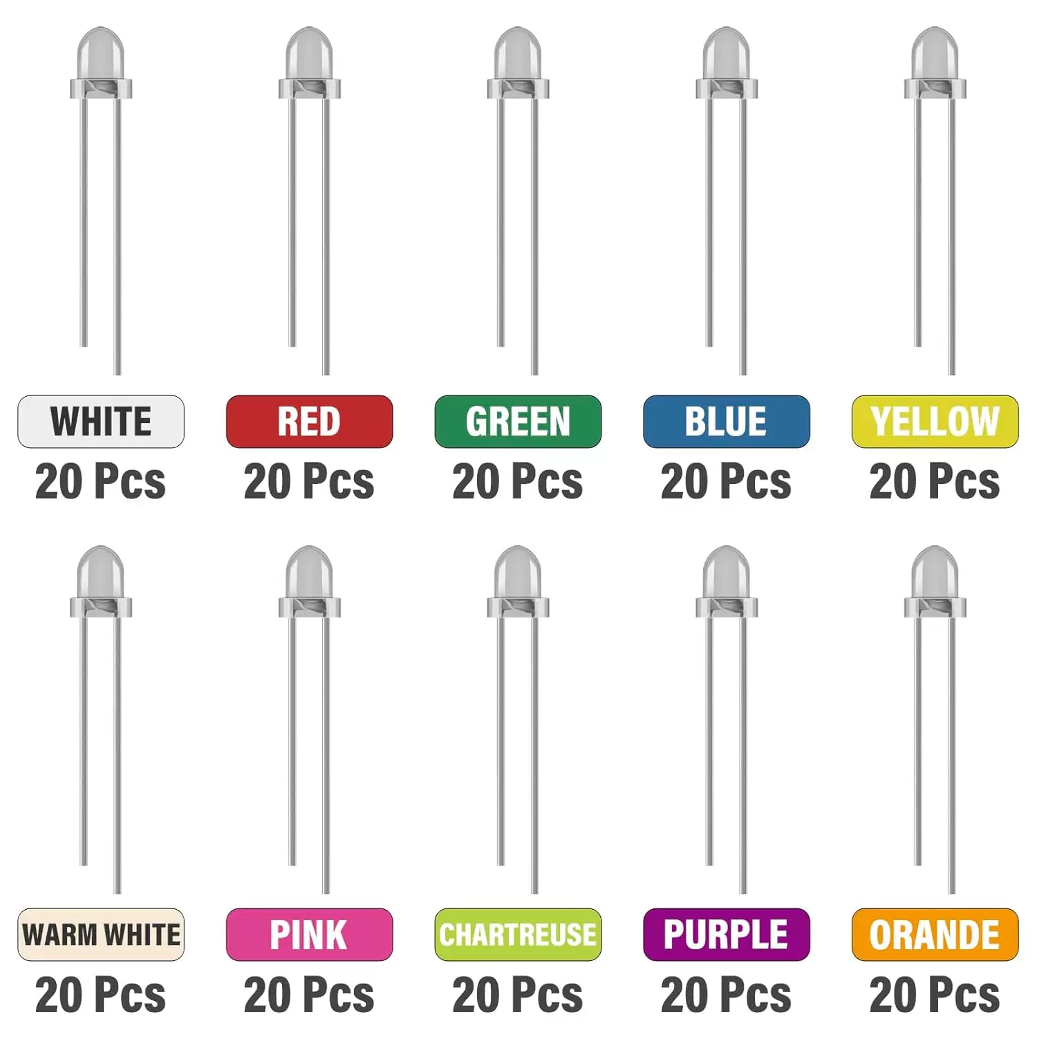 HS8034 F3 3MM 100pcs/ 200PCS 10 color *10pcs/10 color *20pcs led KITS